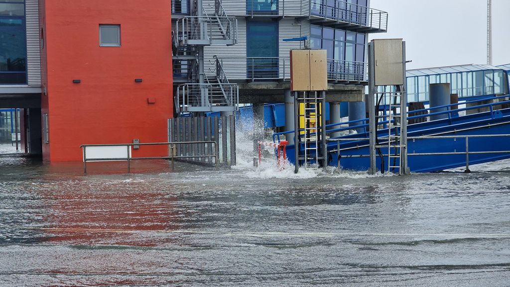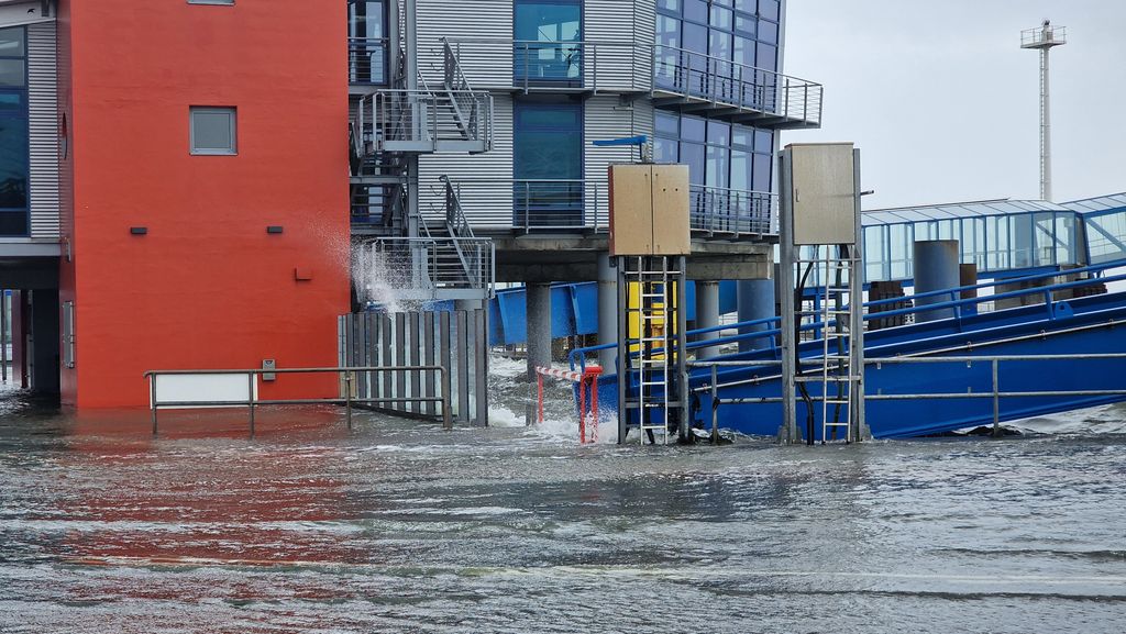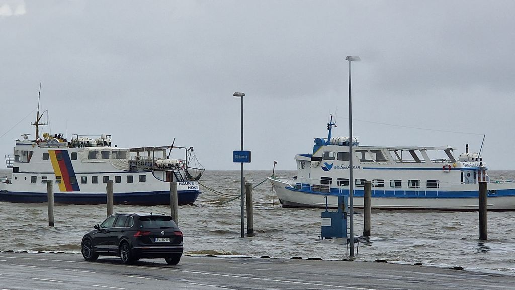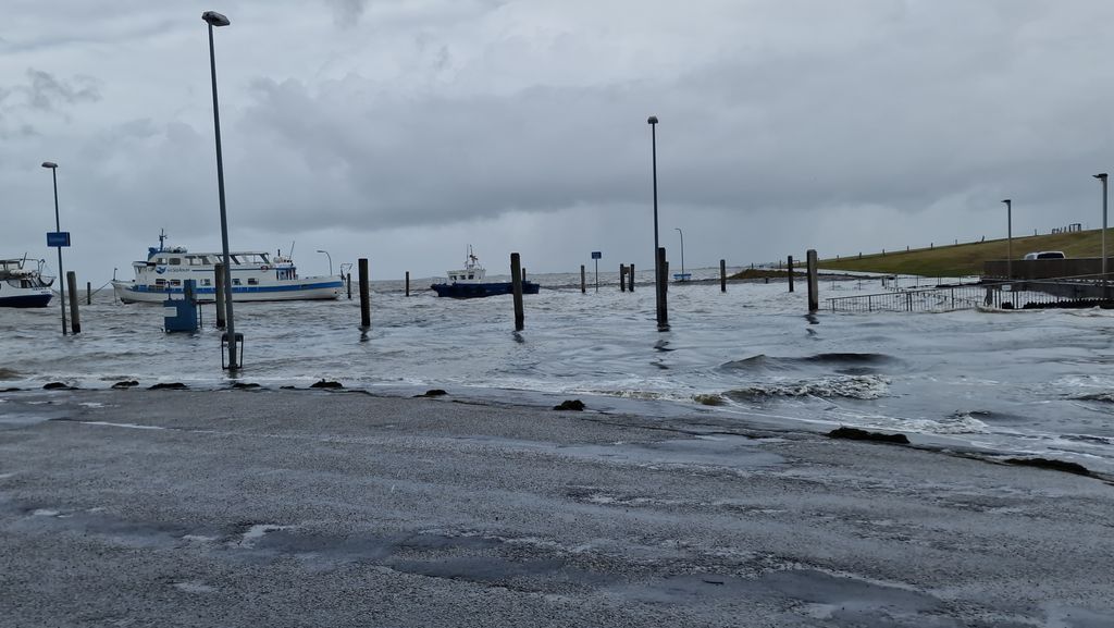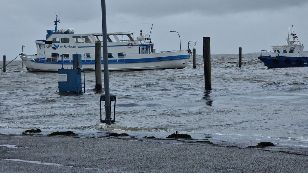 (CIS-intern) –  Am 5. Oktober 2025 war es soweit, der erste Herbststurm und damit eine Sturmflut erfasste Nordfriesland. Gegen Mittag stand das Hochwasser  zwei Meter über Normalnull, Ergebnis waren teilweise überflutete Hafenanlagen. Sogar die Stöbe in Dagebüll war geschlossen worden. Aber grundsätzlich gab es keine Gefahr für die Nordfriesen. Und so strömten auch Hunderte Menschen zu den Häfen an der Westküste. Ist auch immer wieder ein schönes Schauspiel, wenn die Wellen der Nordsee mal so richtig ans Ufer schlagen.
